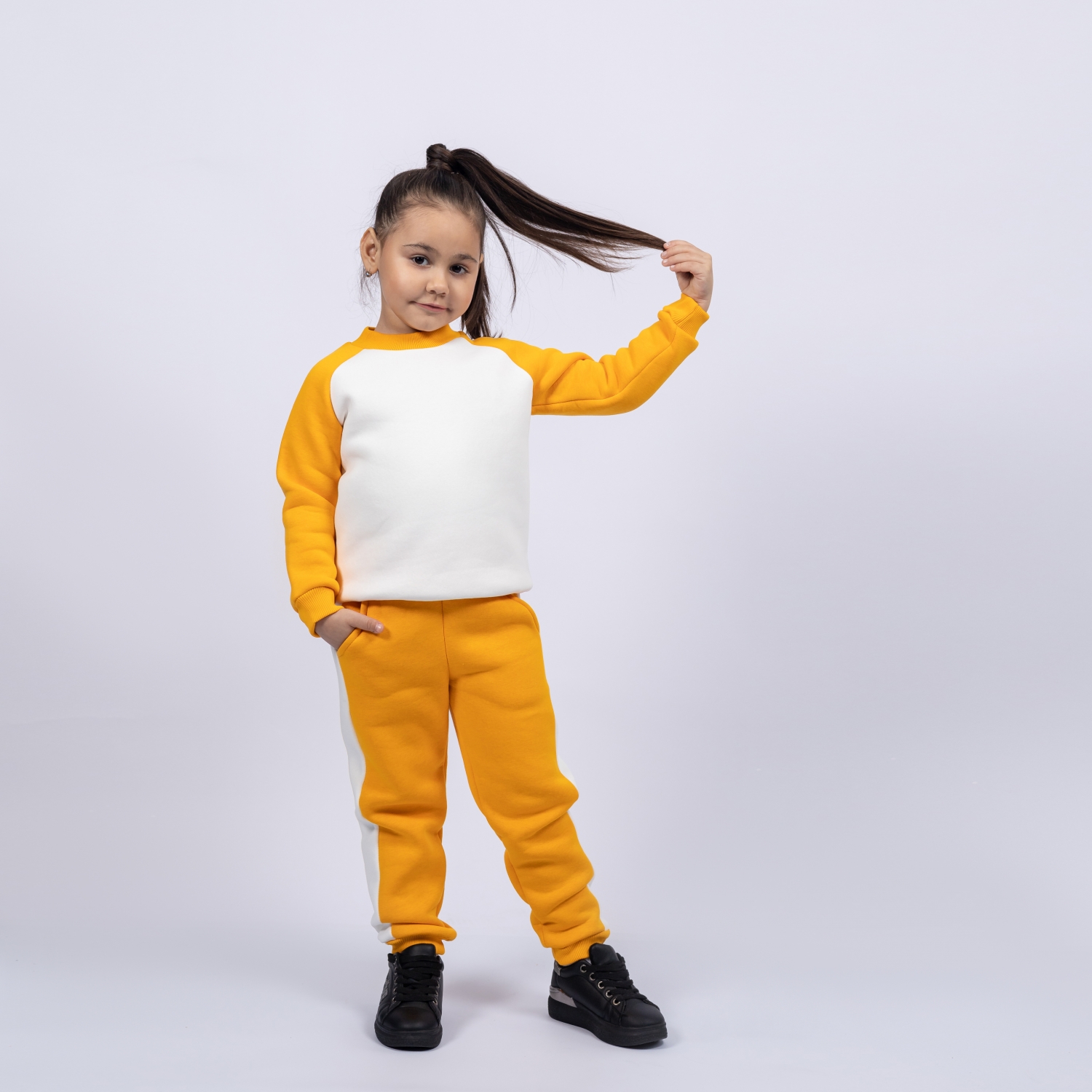 314-А. Свитшот + Штаны, апельсин, хлопок 65%, 35% ПЭ, 3-х нитка (начес) 98,104,110,116