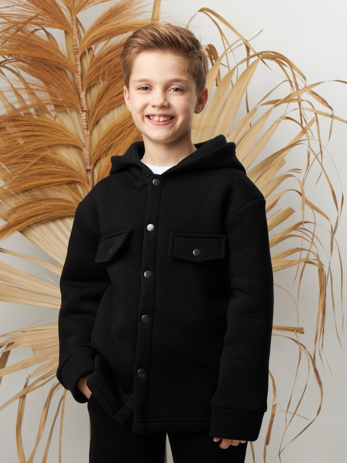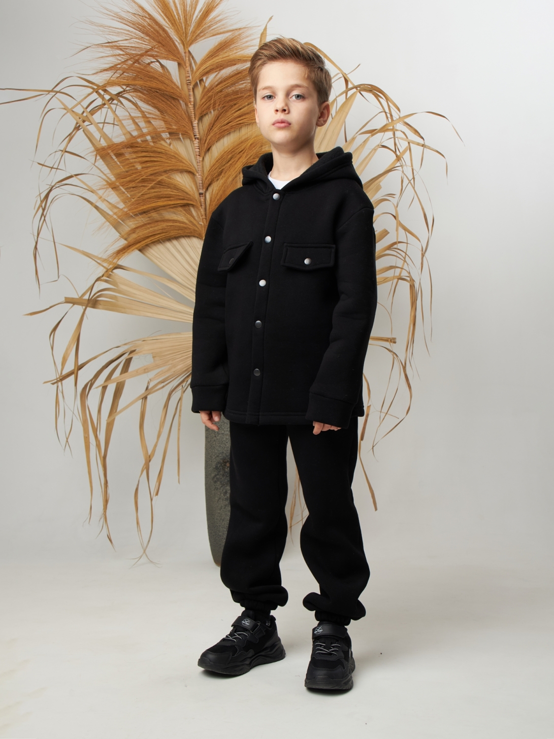 333. Костюм детский (Брюки+Толстовка) на кнопках, черный, хлопок 65%, 35% ПЭ, 3-х нитка с начесом 98,104,110,116